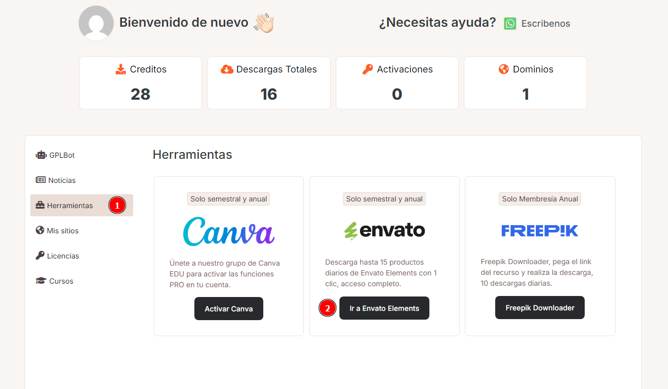 In the "Tools" tab, click the "Go to Envato Elements" button.